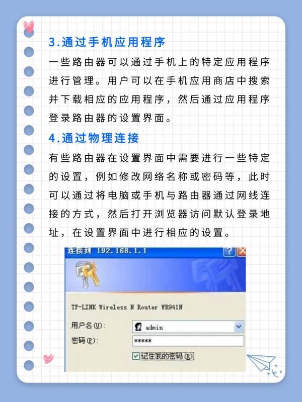 一些路由器可以通过手机上的特定应用程序进行管理。用户可以在手机应用商店中搜索并下载相应的应用程序,然后通过应用程序登录路由器的设置界面。