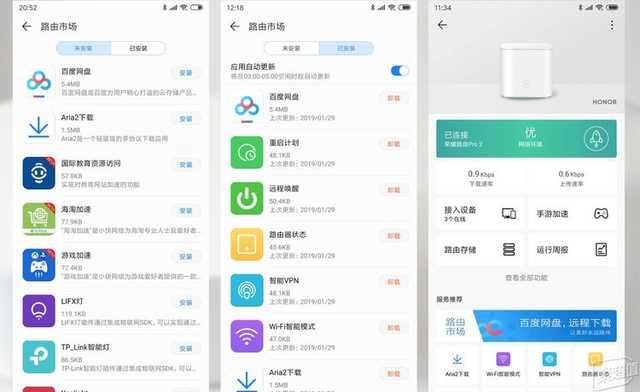 在App路由市场中还有丰富的插件,比如百度网盘,远程唤醒,Aria2下载、花生壳等常用插件,还支持各种协议转换成插件,以构建HiLink为体系的智能家电生态,比如:LIFX灯,Yeelight,HUE birdge等第三方协议,随着越来越多的设备和协议增多,选择也越多了。