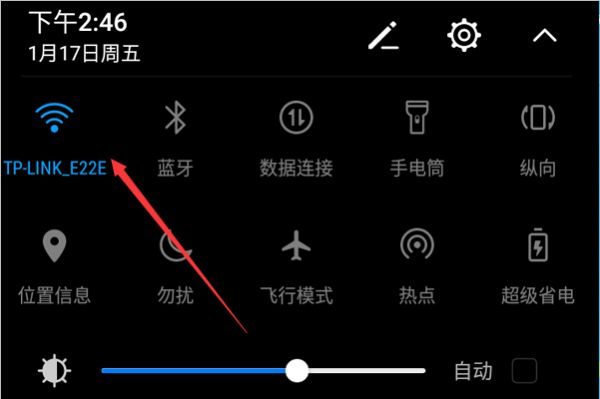 1、在手机顶部下滑的界面中,点击开启无线功能并连接到该无线网络。