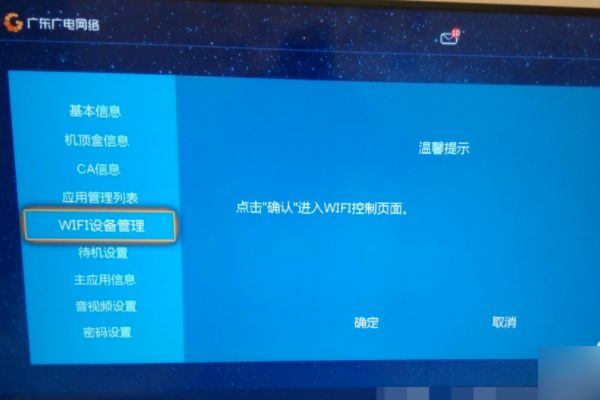 2、进入设置页面后,选中”WIFI设备管理“选确定进入WIFI设备管理页面。