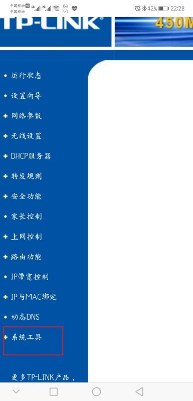 2、输入你的初始密码admin,进入路由器设置页面,选择左下角的“系统工具”。