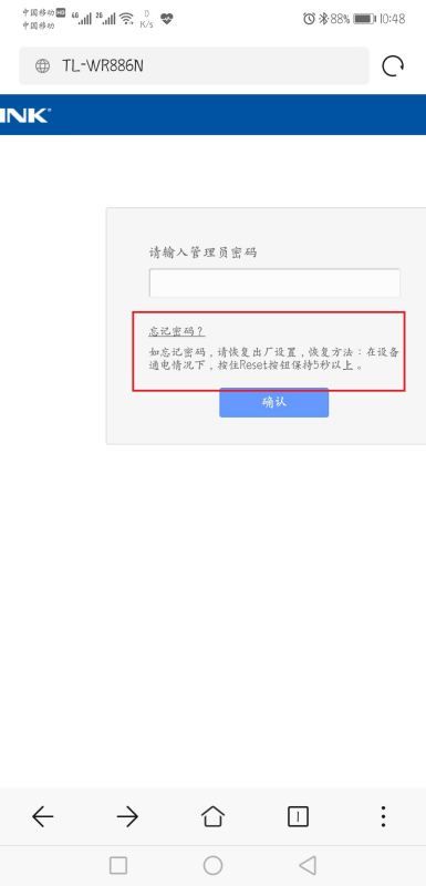注:若您忘记了登录密码,您需要将路由器恢复出厂设置以重置密码,恢复出厂后,路由器的已有设置将会丢失,需要重新配置。