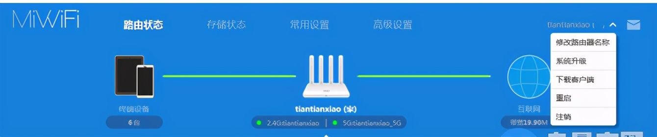 以小米路由器为例,进入管理界面后,点击右上角的箭头,就会看到重启,点击它就重启路由器了。