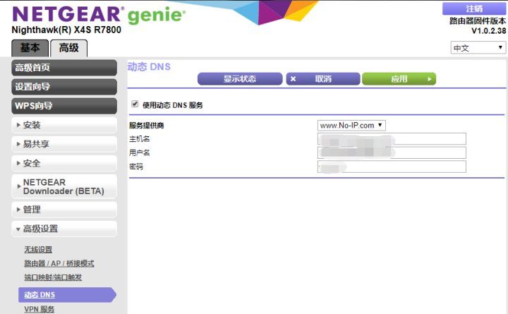 接下来就是配置路由器的DDNS(动态DNS)服务,以 Netgear R7800 为例,大家可以进入路由器后台控制页面,找到DDNS或者动态DNS,选择并注册相应的DDNS服务。