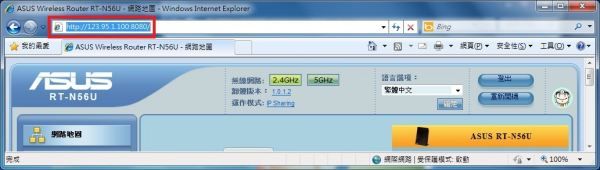 1、以路由器的IP地址为123.95.1.100为例,请开启浏览器并输入http://123.95.1.100:8080