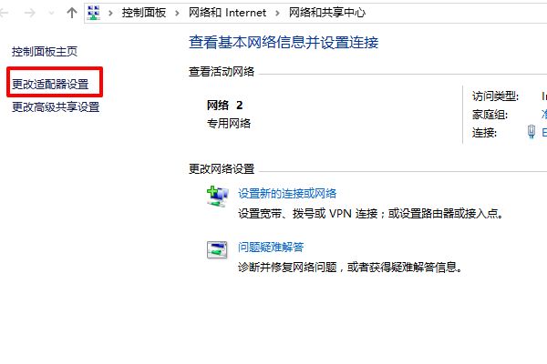2、然后再页面左侧选择“更改适配器设置”;