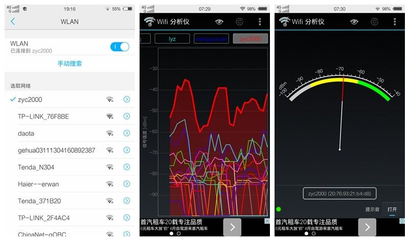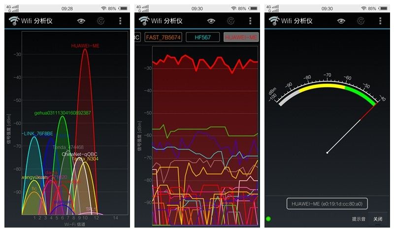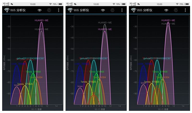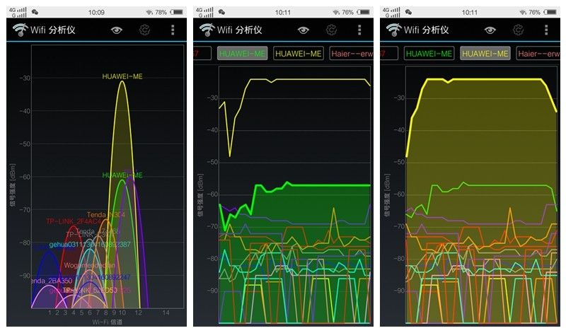 WIFI分析仪显示,有两个完全一样的 HUAWEI-ME热点,信号都是相当好。