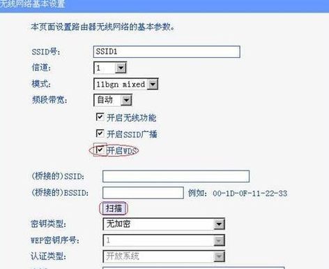 3.在无线设置-基本设置中勾选“开启WDS”。点击“扫描”,搜索周围无线信号。