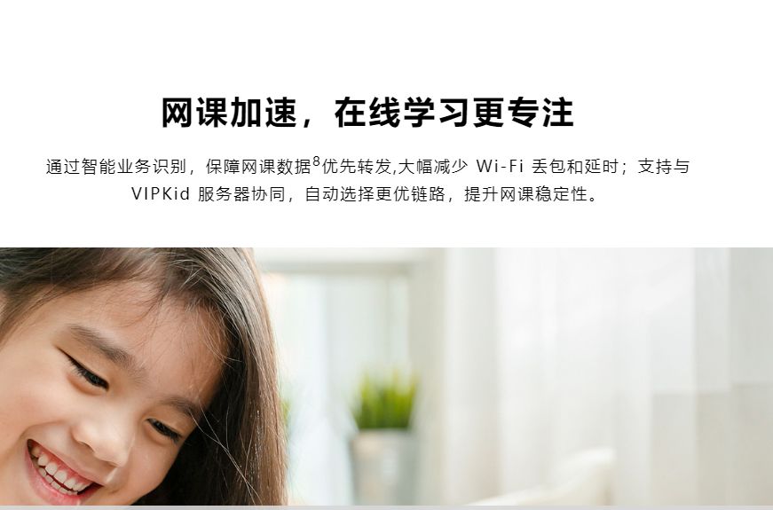 其次,有些路由器有额外的功能,比如有些内置了硬盘,还有一些支持对游戏的加速,对木马的拦截和对功能是最不需要考虑的因素,但是有时候也很重要,例如华为的路由器和VIPKID服务器可以联动,支持VIPKID学习加速,这时家里有小朋友的就可以考虑这点