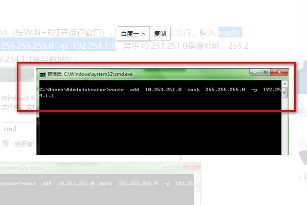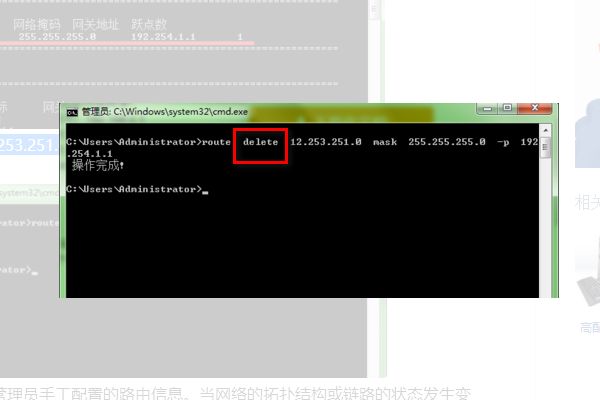 3、最后再界面内的route add 10.253.251.0 mask 255.255.255.0 -p 192.254.1.1 中的add 改成 delete 就可以了。