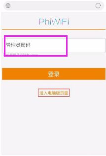 2、自动显示的页面是手机版的,由于过于简单,很多设置选项没有,我们选择电脑板页面,输入管理员密码登录;
