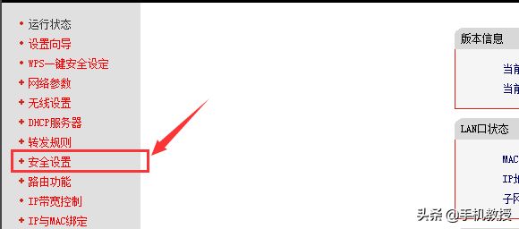 首先通过电脑等其他电子设备登录到路由器后台地址(登陆方式可以查看路由器背面的登陆地址和用户名密码),然后在左侧导航栏中可以看到有一个安全设置选项。