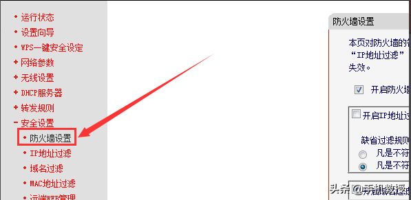 点开左侧工具栏上的安全设置,首先打开防火墙设置。