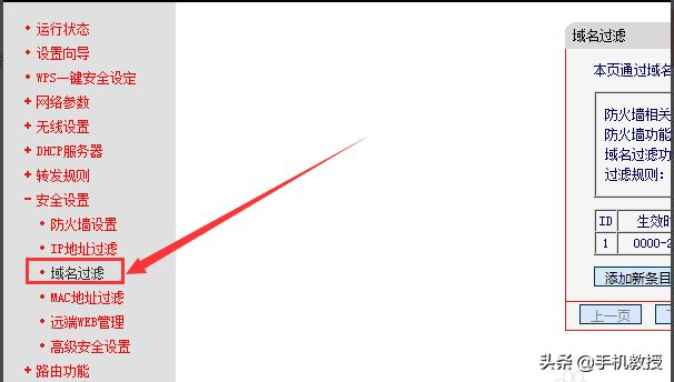 左侧导航栏中,打开安全设置,选择域名过滤选项。