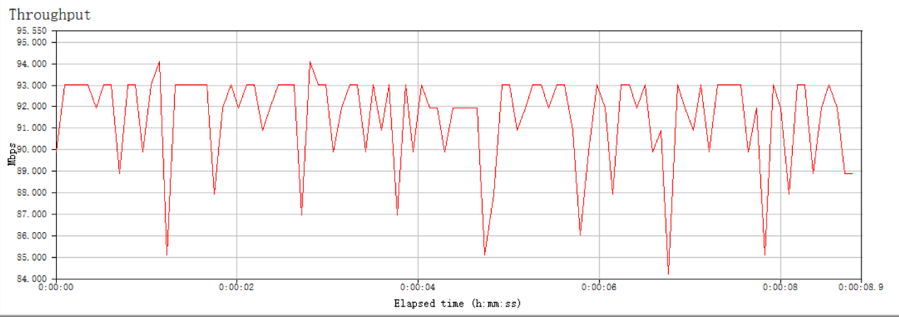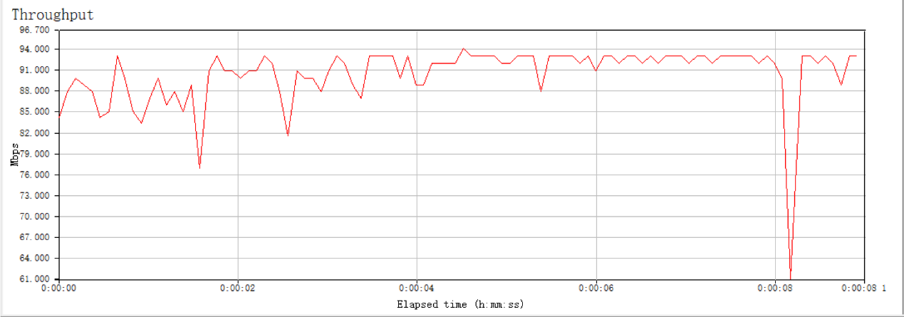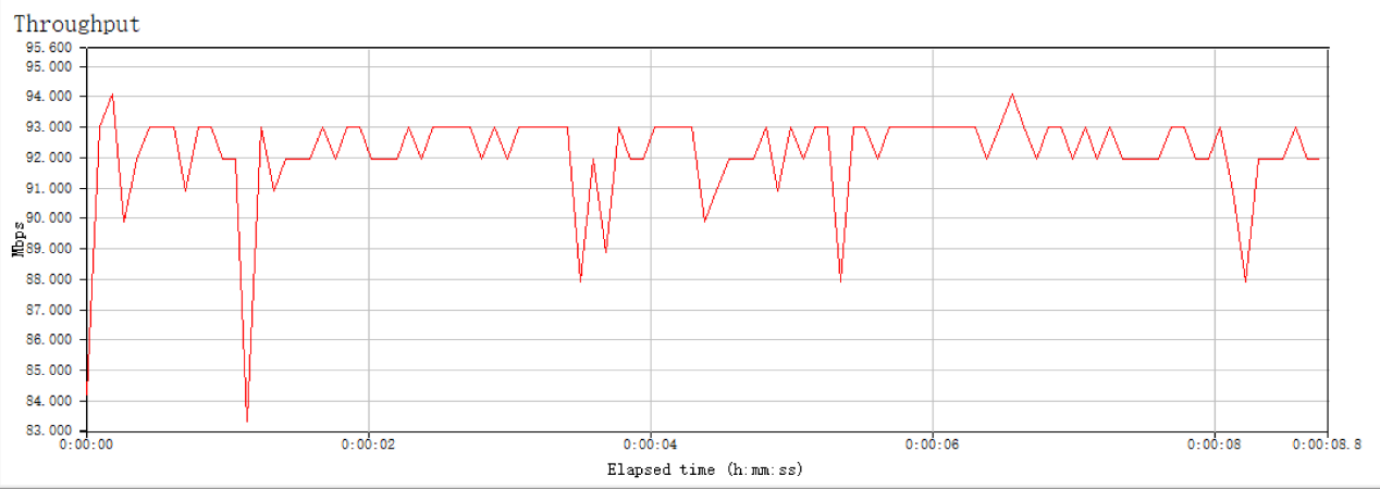 将一台电脑进行有线接入,并用另一台设备在5Ghz的频段下使用IxChariot内置脚本ThroughPut进行测试。由于默认的文件太小,我们将文件大小扩大了10倍。