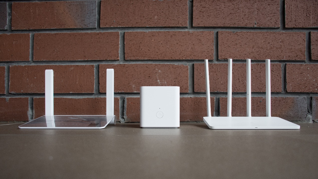 而小米路由器3和360安全路由P2则采用了目前路由常见的设计,扁平的机身,四根天线环绕机身。不过,小米路由器3的机身与荣耀路由X1增强版一样采用白色作为主色,并且看起来相比360安全路由P2更加扁平,指示灯在正面的下部,四根天线都印有MIWIFI的字样。