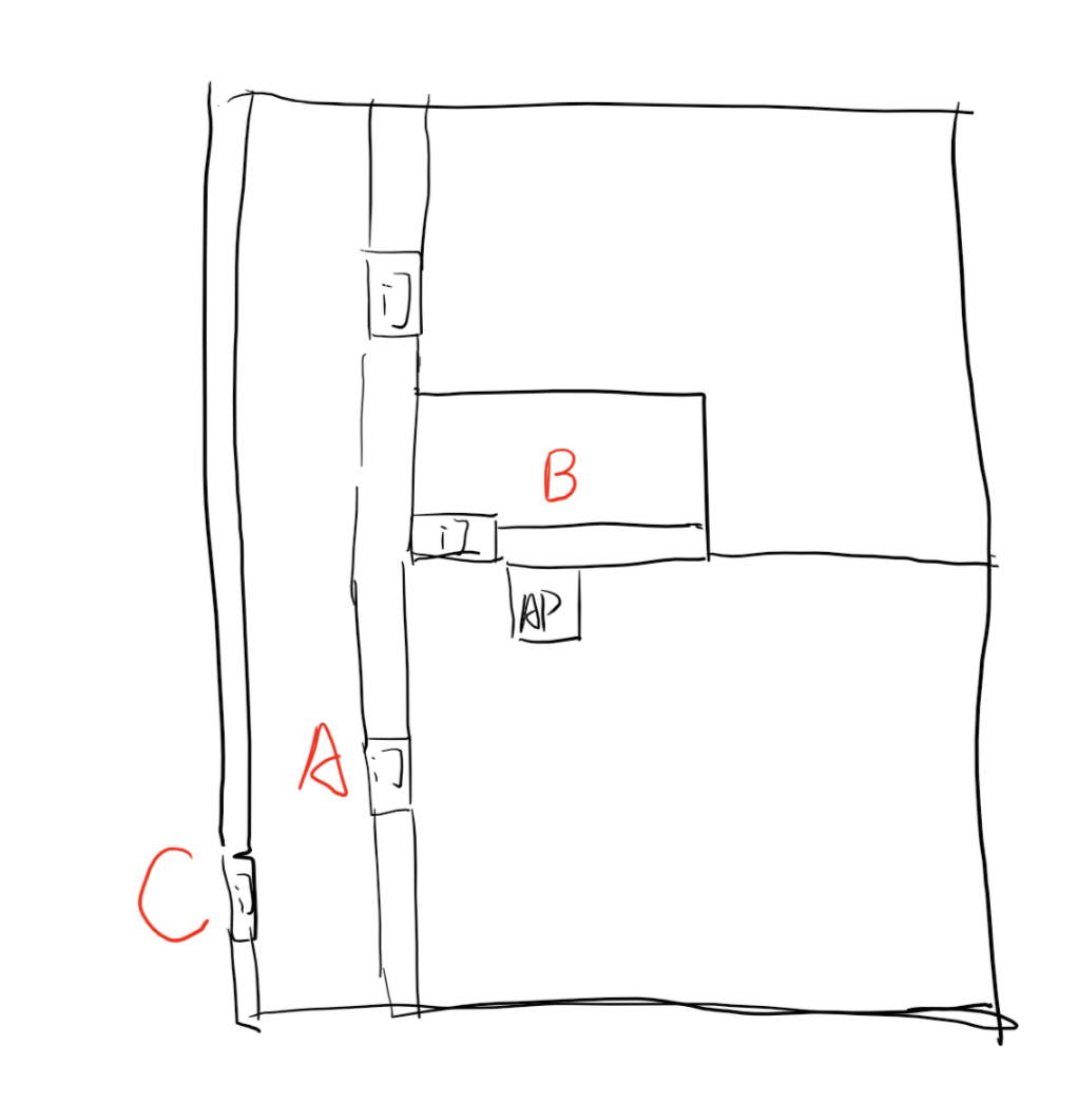 测试环境如图(AP为路由器放置位置)