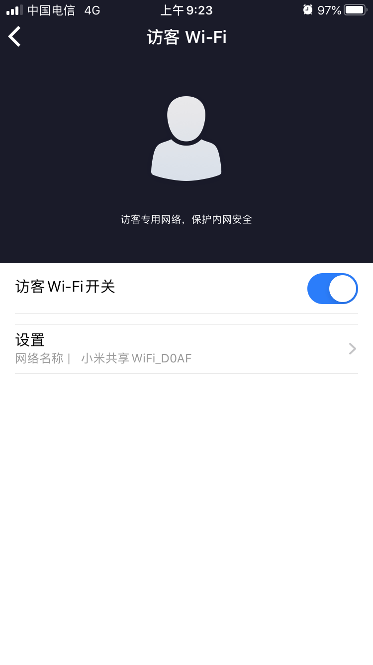 ▲ 访客Wi-Fi是小米路由器AX1800为客人准备的专用Wi-Fi网络,它可以防止访客偷看你的隐私文件。