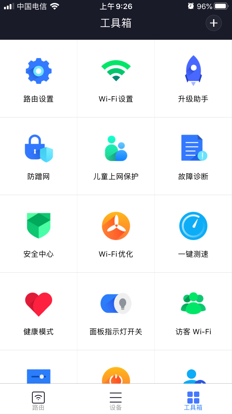 ▲ 小米WiFi手机App的工具箱中包含了儿童上网保护、安全中心、访客Wi-Fi等多个实用功能