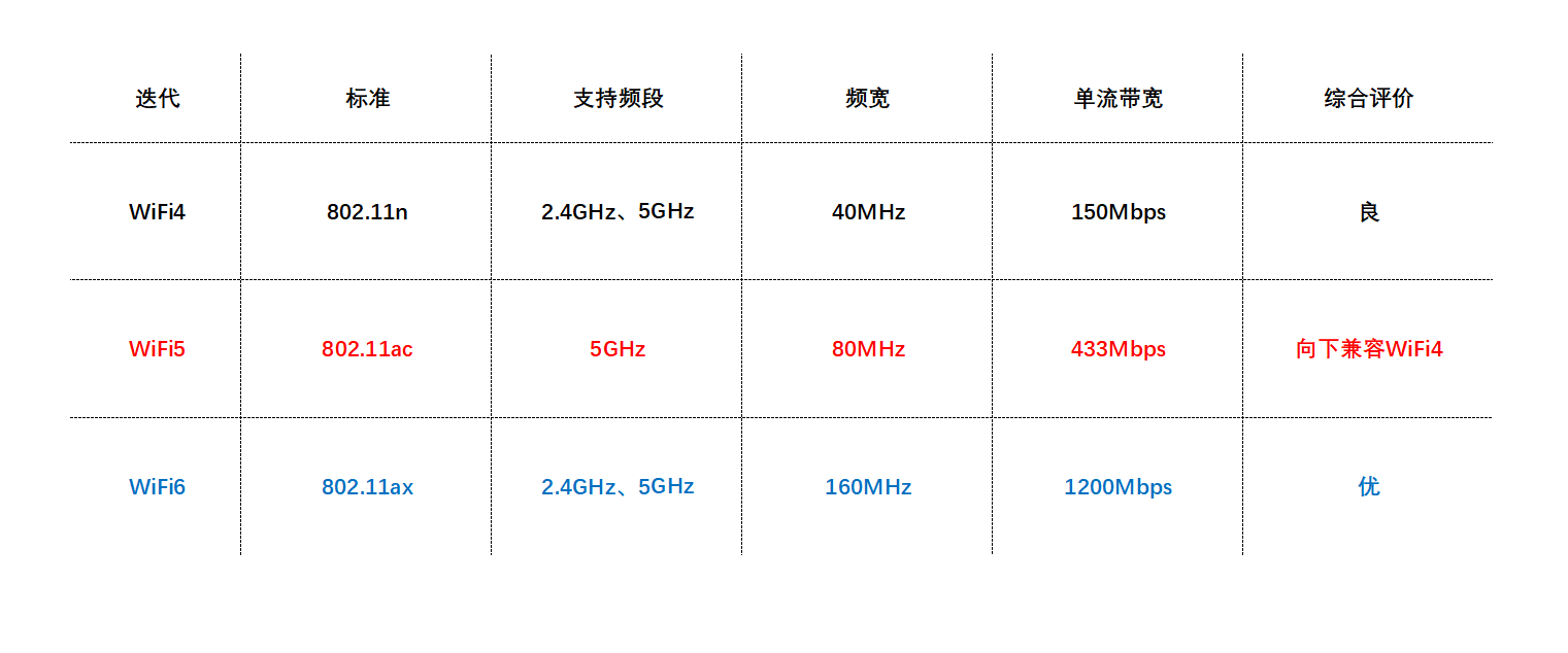 WiFi6 是2019年无线路由领域出现的最新WiFi标准,与之对应的此前还有WiFi4 和WiFi5 标准。