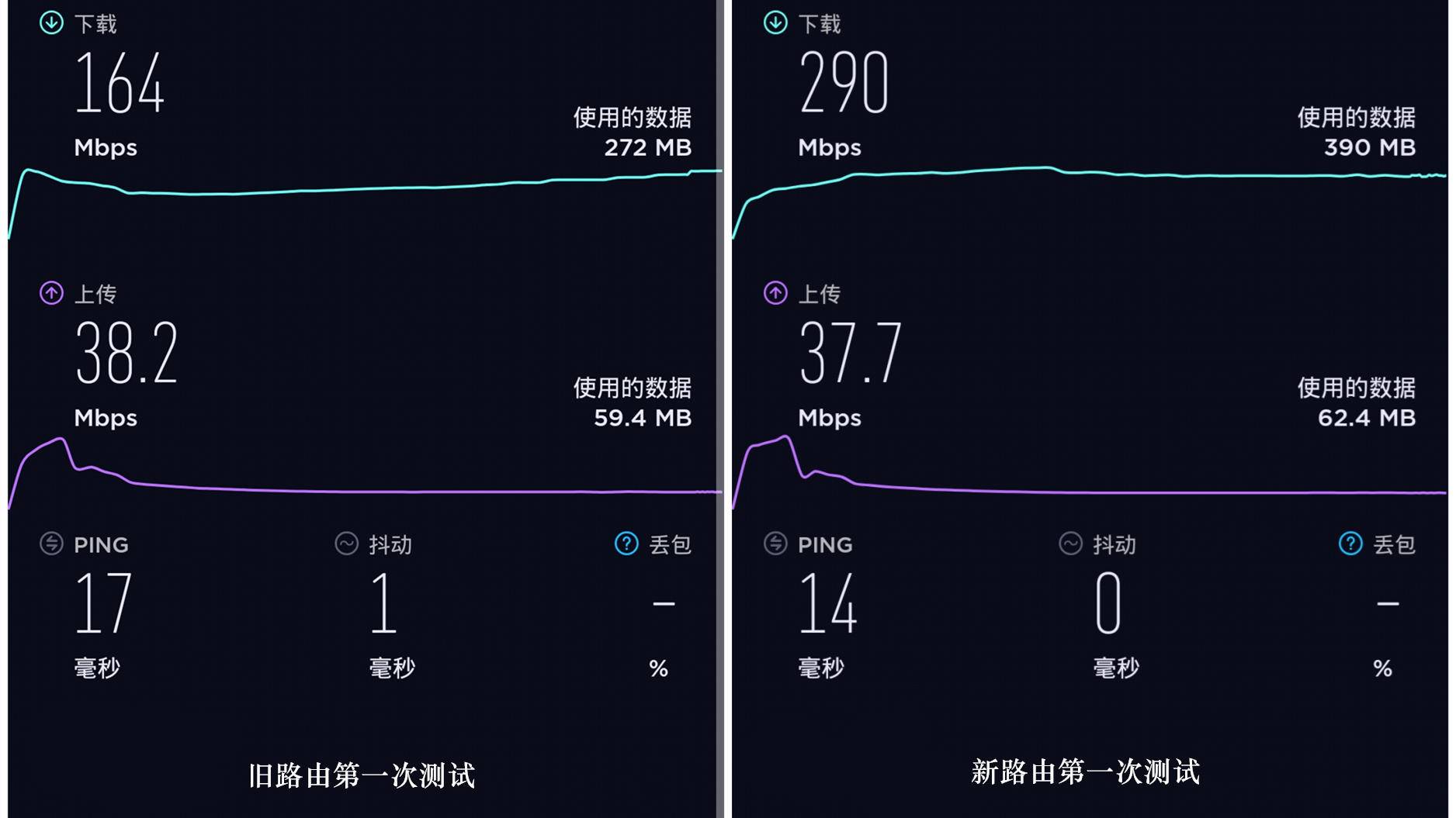 从统计表中可以看出,相应的ping、抖动情况新路由效果也要优于此前的路由器。