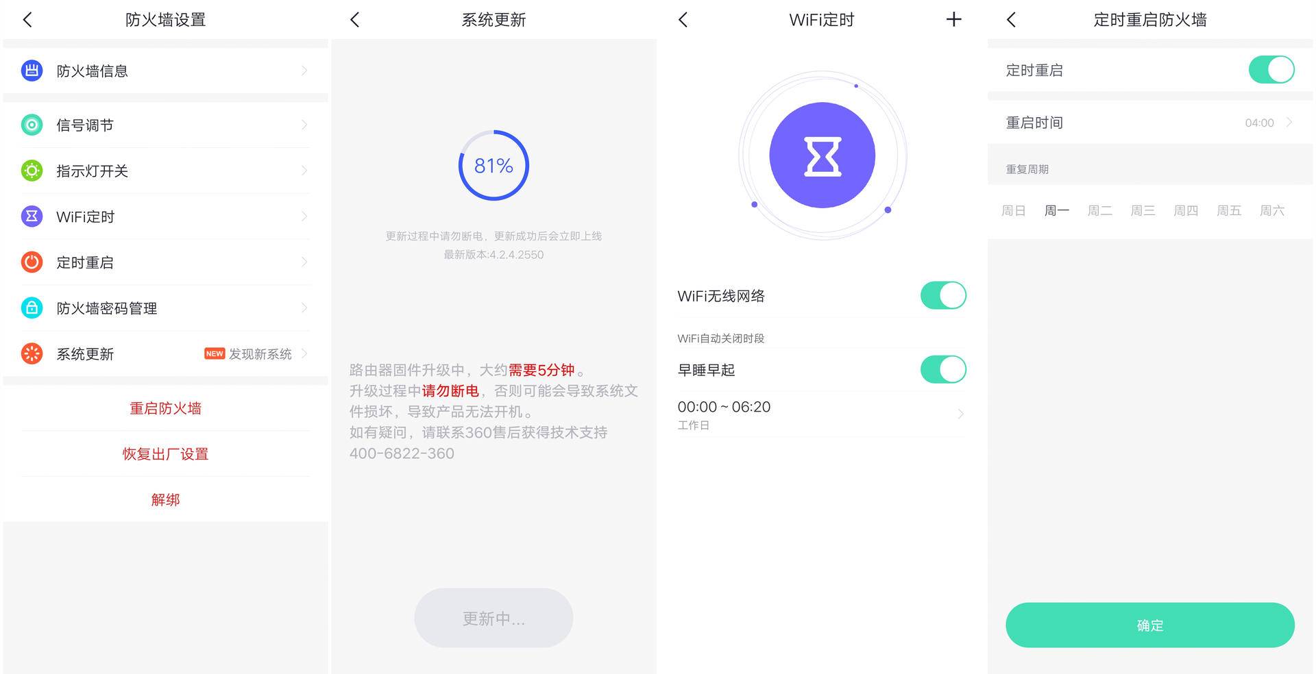通过深度设置防火墙,通过固件升级及时得到更充分的防护,通过WiFi定时关闭改变家人太晚不睡刷视频的恶习,还可以通过设置定时重启路由器以保持最佳运行状态。