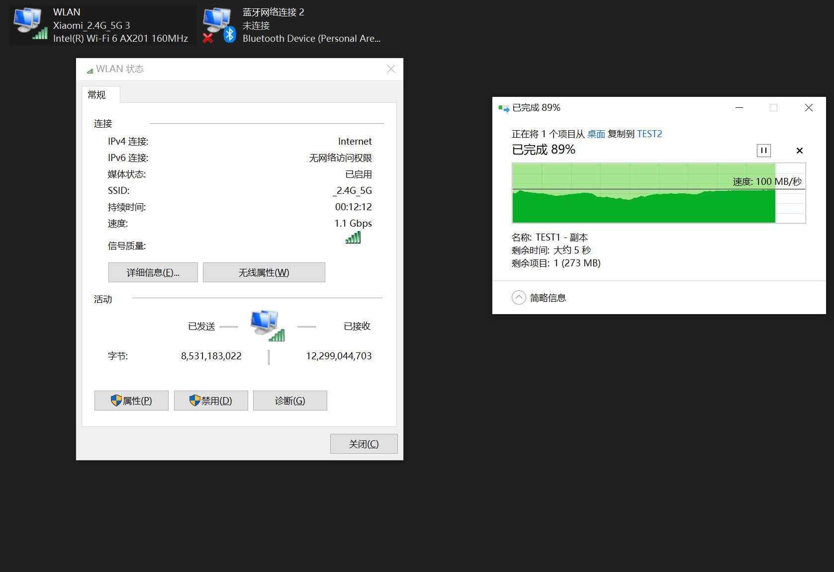 网络连接状态可达到1.2Gbps,即1200Mbps。