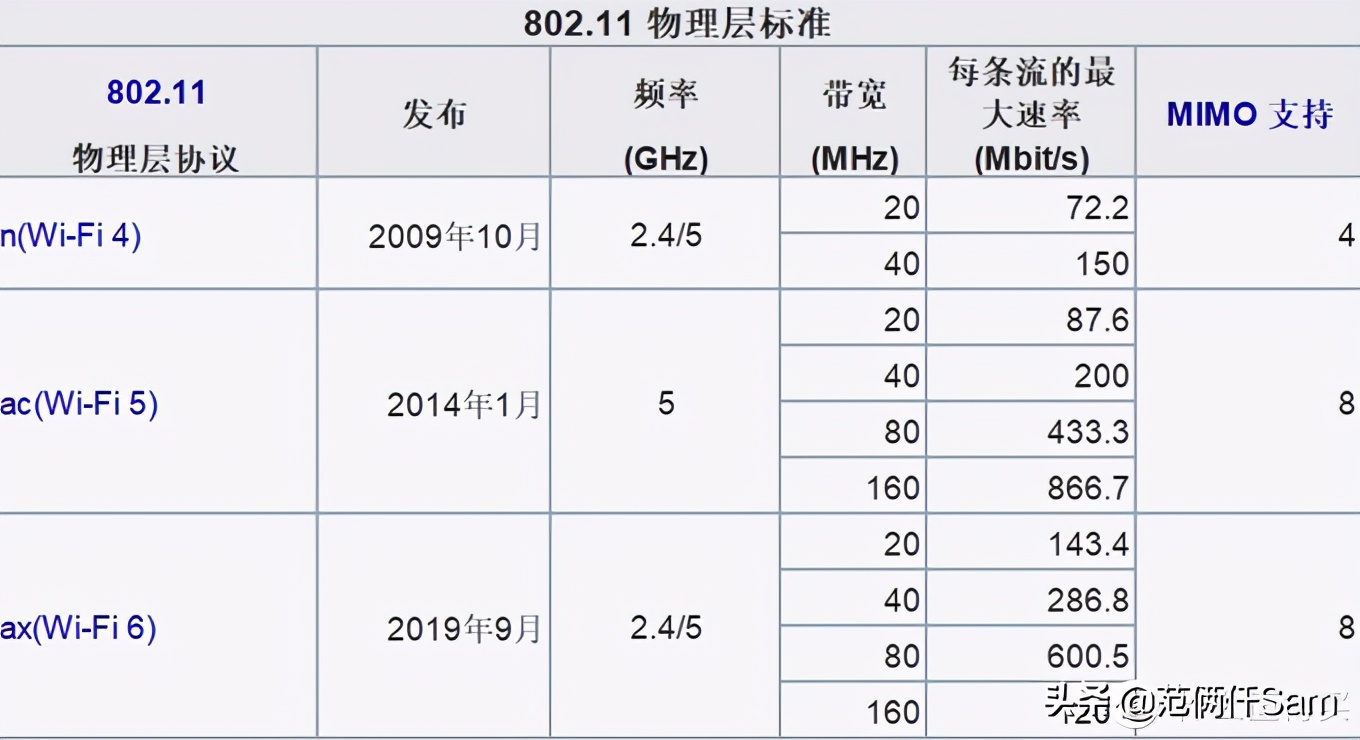 然后你需要知道路由器发射的信号是什么带宽,对应出后面的“每条流的最大速率”,最后再乘以mimo的支持数量。