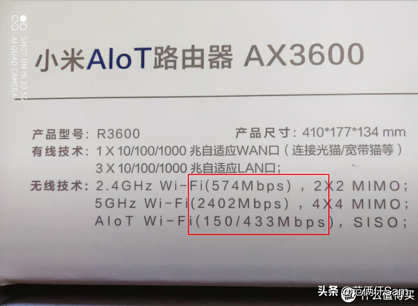 小米AX3600的5G是wifi6的80MHz,4*4mimo;2.4G是wifi6的40MHz,2*2mimo;