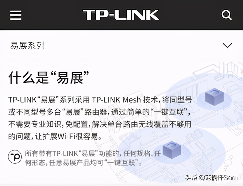所以所有你买到的TP产品后面带易展两个字的都可以“一键互联”,让多个路由器自动组网,更便捷的让你的豪宅无死角覆盖高速网络,
