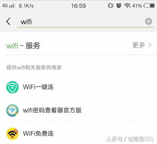 在搜索里面,搜索WiFi,搜出的会有WiFi一键连,点击进入