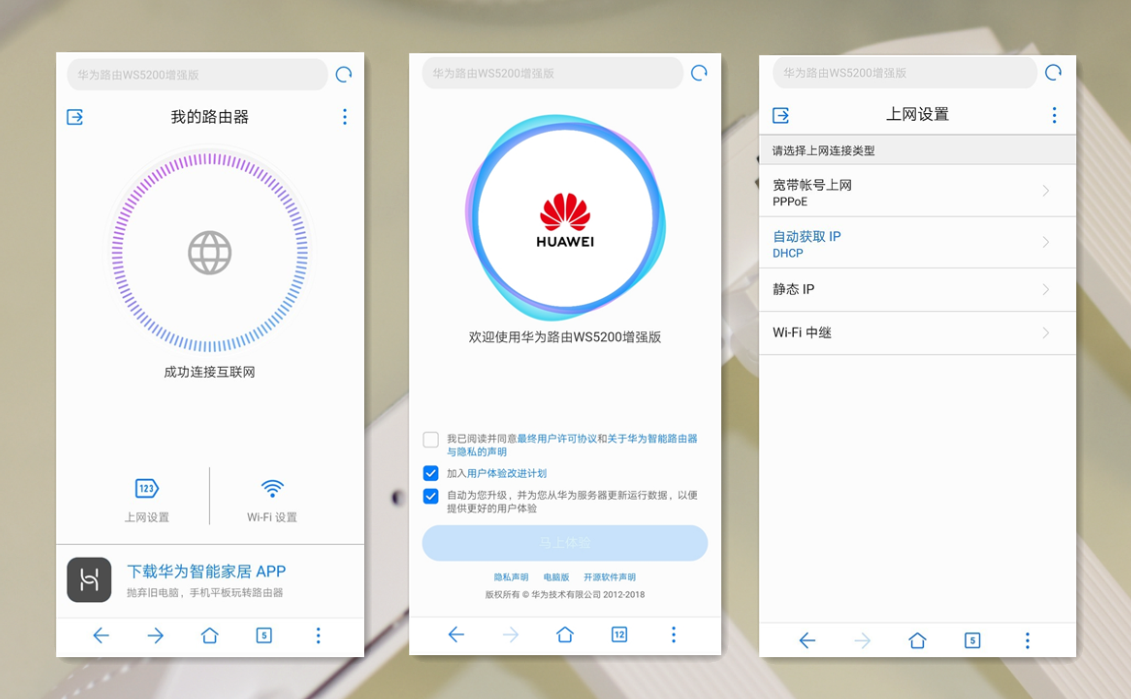使用上华为路由WS5200增强版也是非常的简单,只要用户网线连接好路由器,打开浏览器任意网络就会弹出配置页面,然后根据页面提示输入WIFI名称和密码即可使用。并且华为WS5200 增强版还拥有专属的App,用户可以通过App进行更多的内容设置,比如远程管理,让用户不在家也可以查看家庭的网络,还可以进行上网控制,来管理孩子的上网时间,也可以进行客人来访WIFI,防止家庭WIFI密码泄露,导致别人蹭网,当然更多的功能,大家可以自己摸索。