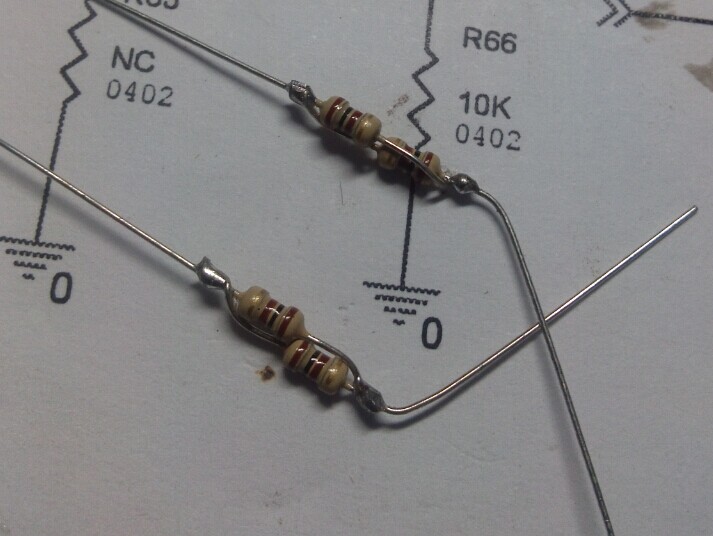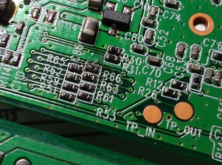 2)接通电阻R66。接通背面R66位置22R电阻(22R电阻从旧内存条上面拆的,上面的电阻基本都是22R)。