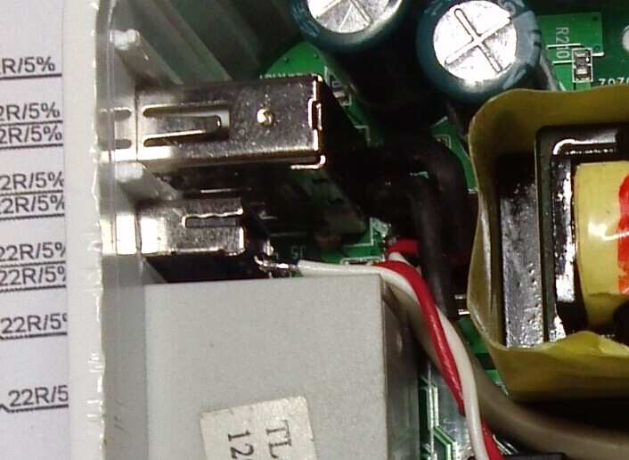 13)加miniUSB DC5V外接电源端口。这个功用我觉得挺实用的,比TTL还实用的多。所以,必须装啊。移动电源、插笔记本上,就可以移动蹭网啦。反正移动使用的就用的上就是了。看了下板子的布线,结合盒子的结构、接口位置等因素,没办法把端子装在板子上了,只能考虑跳线。考虑以后拆装方便,插接端子肯定得用上。总不能拆一次就要焊一次电源线吧。