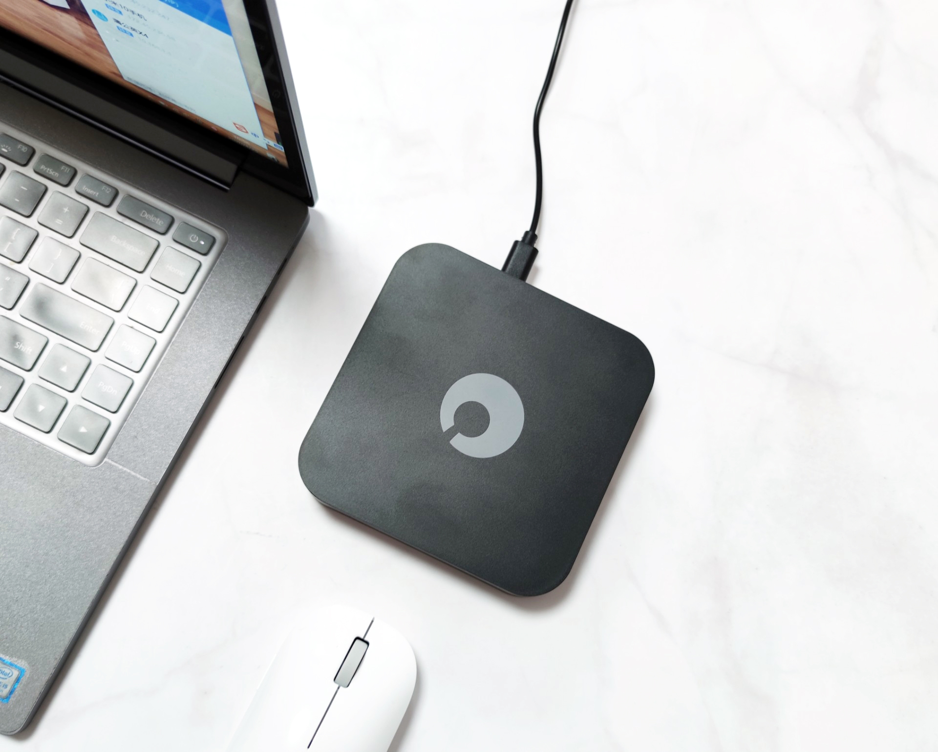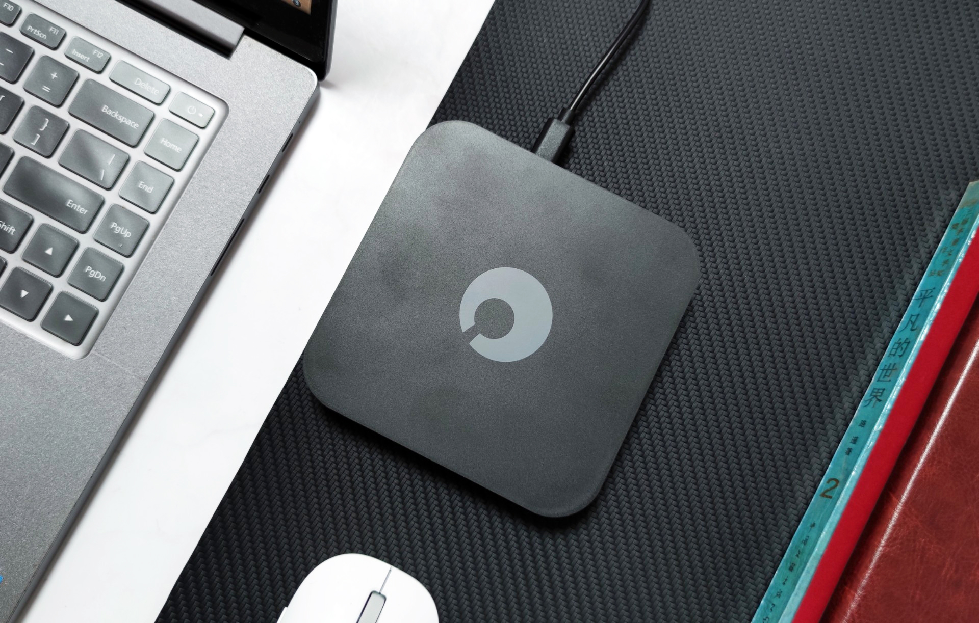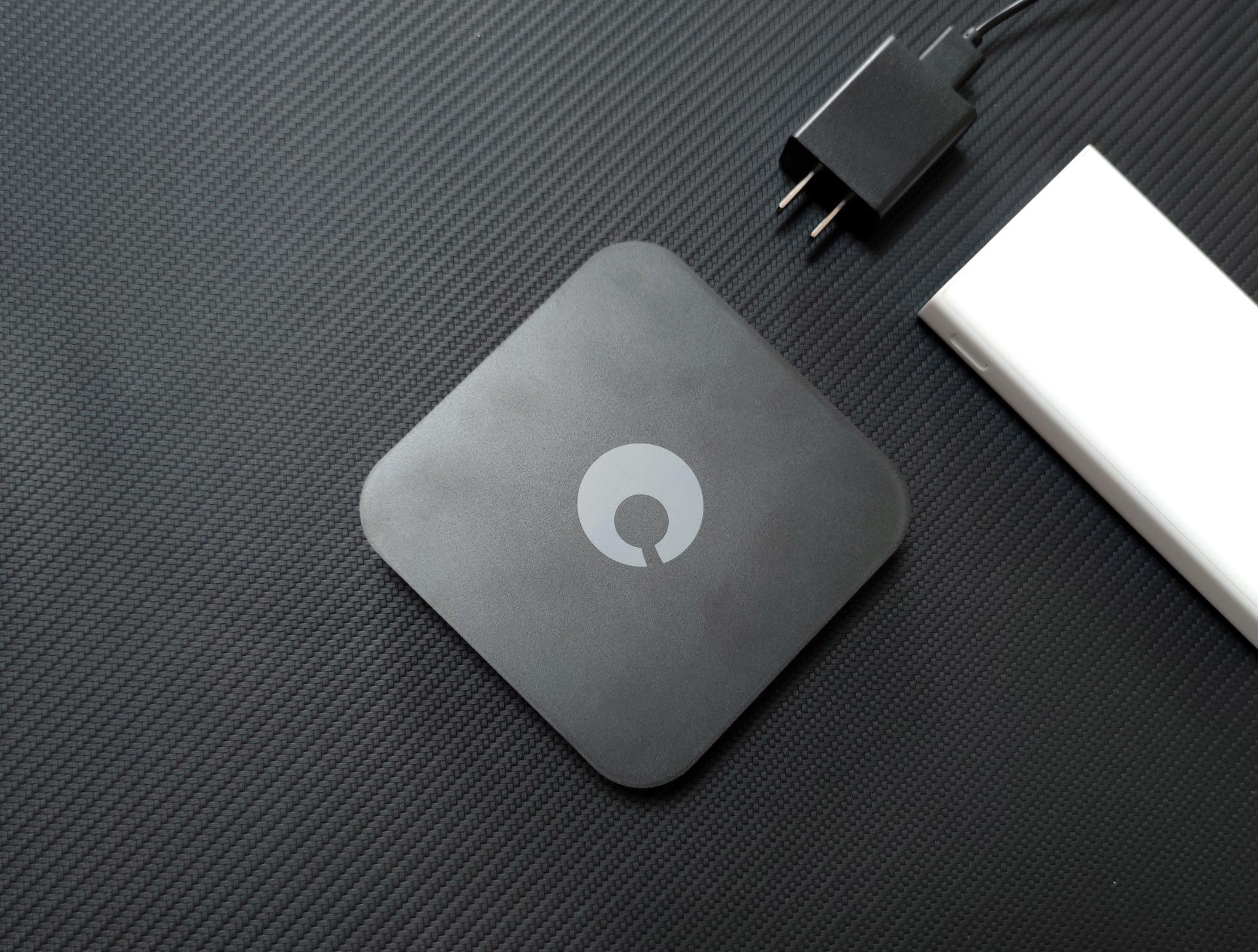 机身为黑色,中间是LOGO标志;四个角均为大R角,三维尺寸是120x120x21(mm),整机小巧,我外出时直接放在小背包里。机身材质为亲肤塑胶,表面采用磨砂工艺,触感舒适;粘上灰尘的话用纸巾或者抹布一擦即可恢复如新。