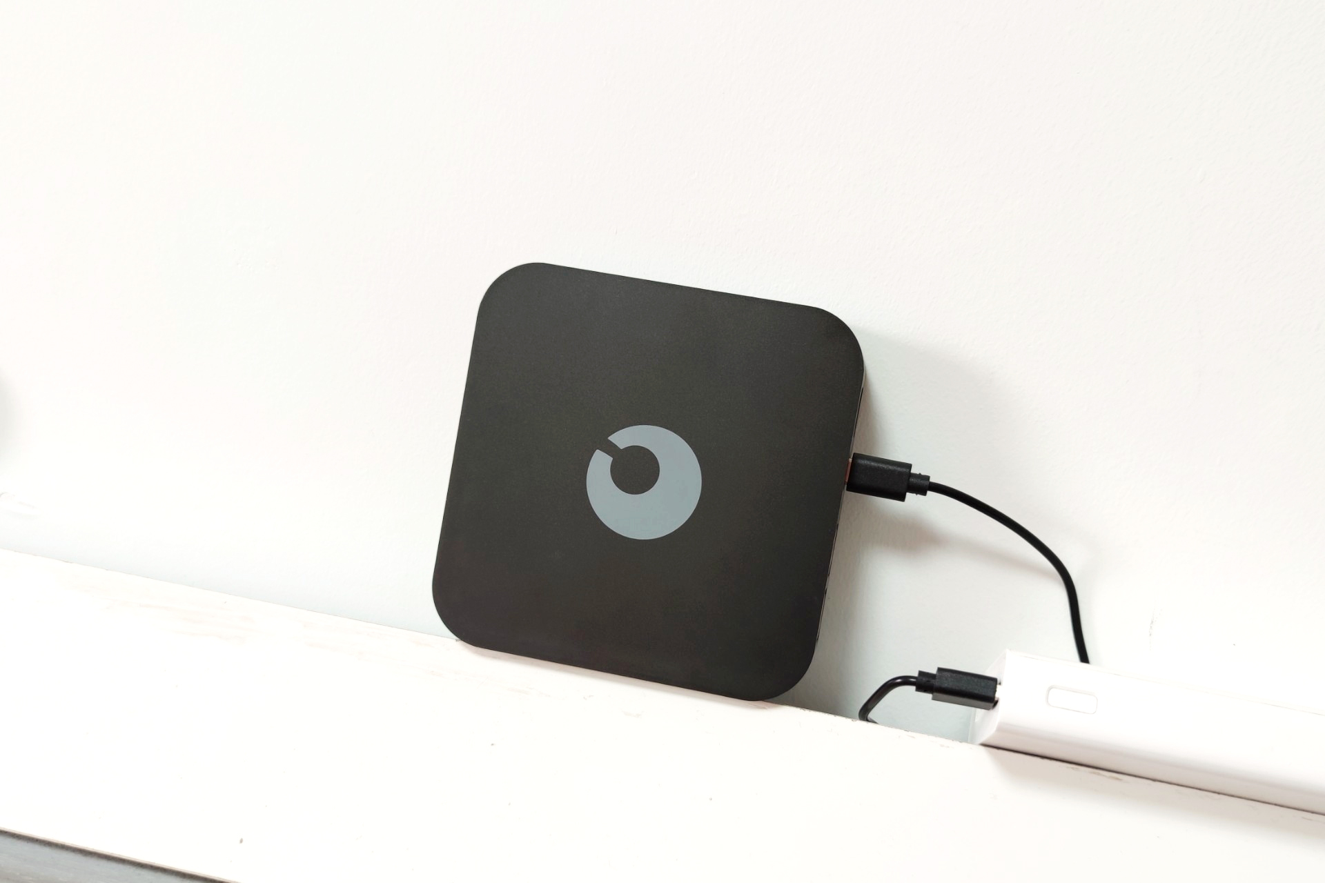 电源接口是TYPE-C接口,输入功率为5V-2A,室内可以用插座、室外可以用充电宝供电;开机后,正面蓝灯闪烁表示系统启动中,蓝灯常亮表示已连接互联网。