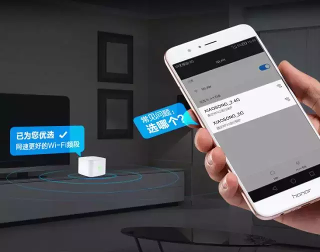 此外,荣耀路由2还具有双频优选功能,2.4GHz 具有穿墙强、覆盖广的优势;5GHz则延迟更低、速度更快。