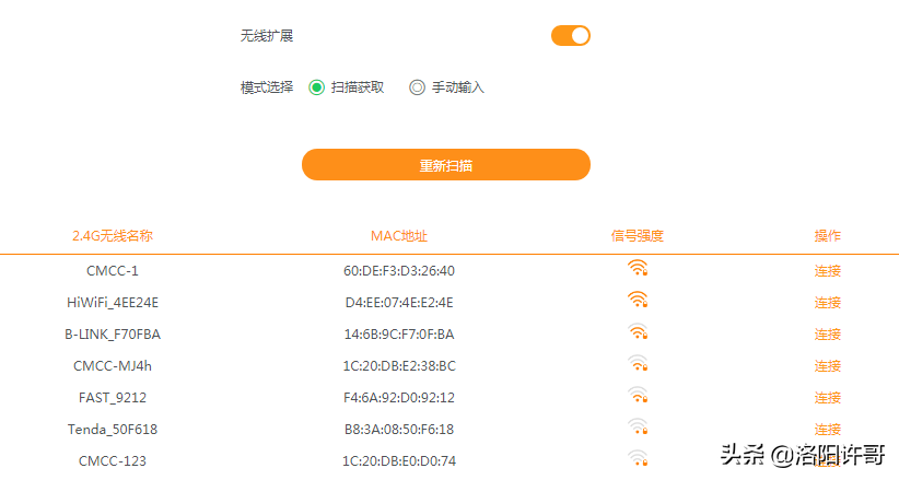 找到你要扩展的路由器A的信号,然后点击后面那个选项,连接。