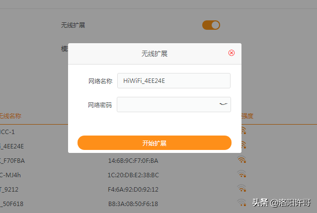 在网络密码中输入你的路由器A的密码,点击开始扩展就可以了。这样你的路由器B也可以上网了。然后把路由器放在你感觉信号毕竟弱的地方,就可以达到扩展信号的目的。不过这种方法的缺点是,路由器B和路由器A不能离的太远,要不然信号可能会中断。大家可以多试试几个地方,找到最合适的地点,放置路由器B就可以了。