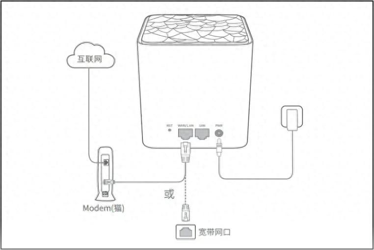 一.请确认路由器是否正确安装,新买的路由器按照"光猫网口"—>网线连接—>"路由器WAN口",如下图。