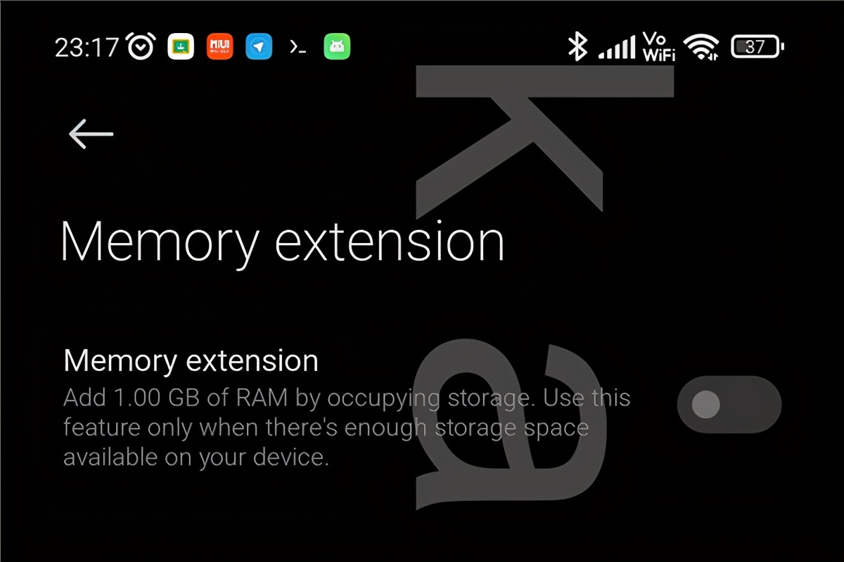 开发者Kacper Skrzypek近日表示,其在MIUI系统中发现“内存扩展”选项,不过目前只是停留在测试阶段,短时间内不会对普通用户开放,预计可能为MIUI13系统主打功能。虽然小米内存扩展技术来得稍晚,好在相关技术的难度非常低,实现起来并不困难,所以不会落后友商太久。