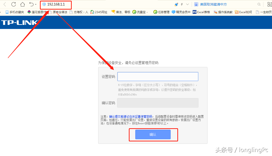 连接成功后,我们进行参数配置,从浏览器地址栏中输入路由器的管理地址,一般为192.168.0.1或者是192.168.1.1,特殊路由器可以直接参考说明书,或者查看连接状态中的网关即为路由器的管理地址;第一次进入路由器需要设置一个管理员密码如下图: