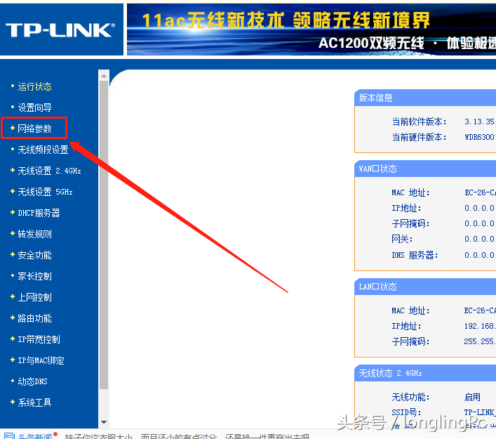 设置好管理员密码后,就进入了路由器的配置菜单中,我们打开左边的网络参数来配置上网参数: