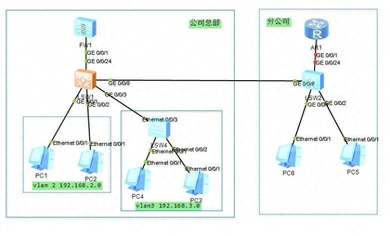 测试一下,用总公司PC1 ping 分公司PC6,看结果,通了。
