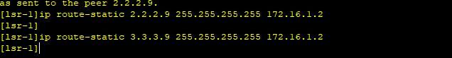 ip route-static 2.2.2.9 255.255.255.255 172.16.1.2ip route-static 3.3.3.9 255.255.255.255 172.16.1.2