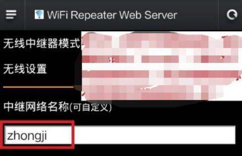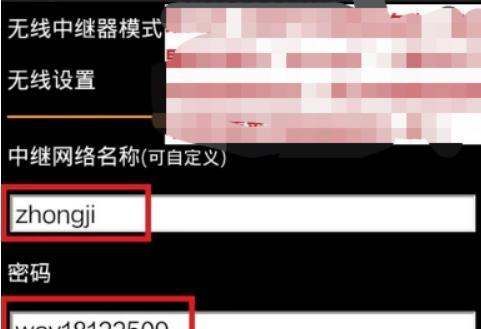 修改网络名称:将中继器的WiFi名称改为与原路由器不同的英文名称(如zhongji),名称必须为英文。
