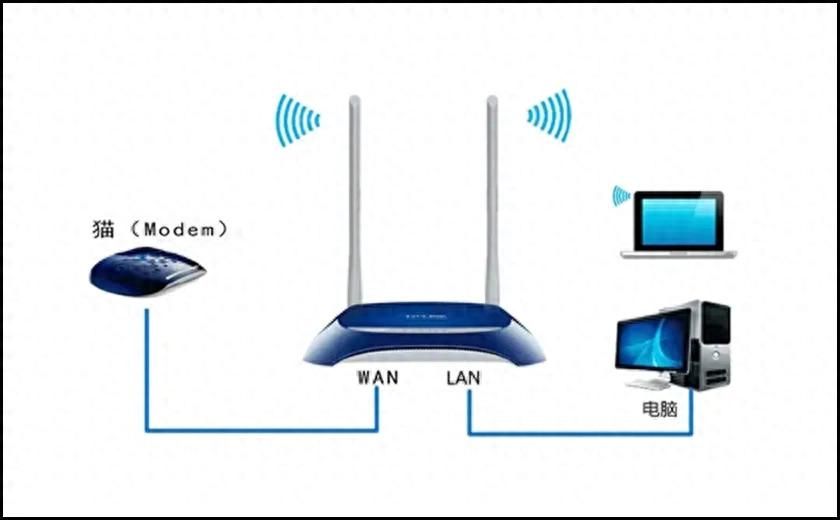 路由器:用网线连接光猫的“千兆口”和路由器的“WAN口”。