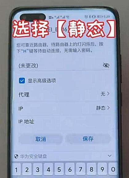 第二步:配置静态IP并获取网关地址在修改网络界面中勾选“高级选项”,将IP设置改为“静态”,此时会显示网关地址。长按网关地址并复制,或手动记录该地址。