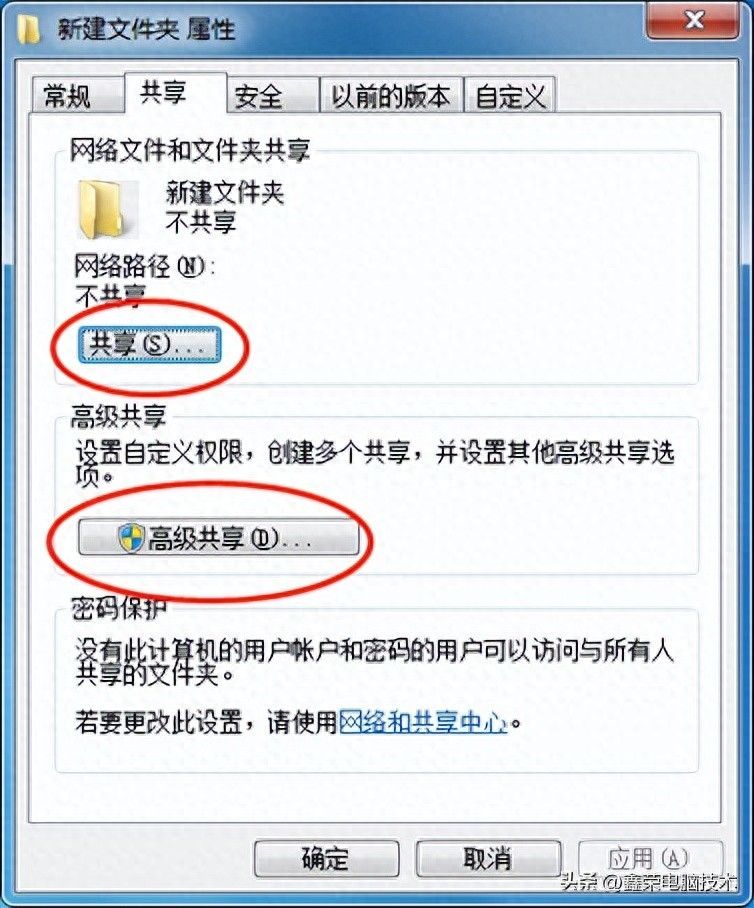 切换至“共享”选项卡,点击“高级共享”。