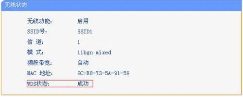 此时第一台无线路由器与第二台无线路由器已成功建立WDS。